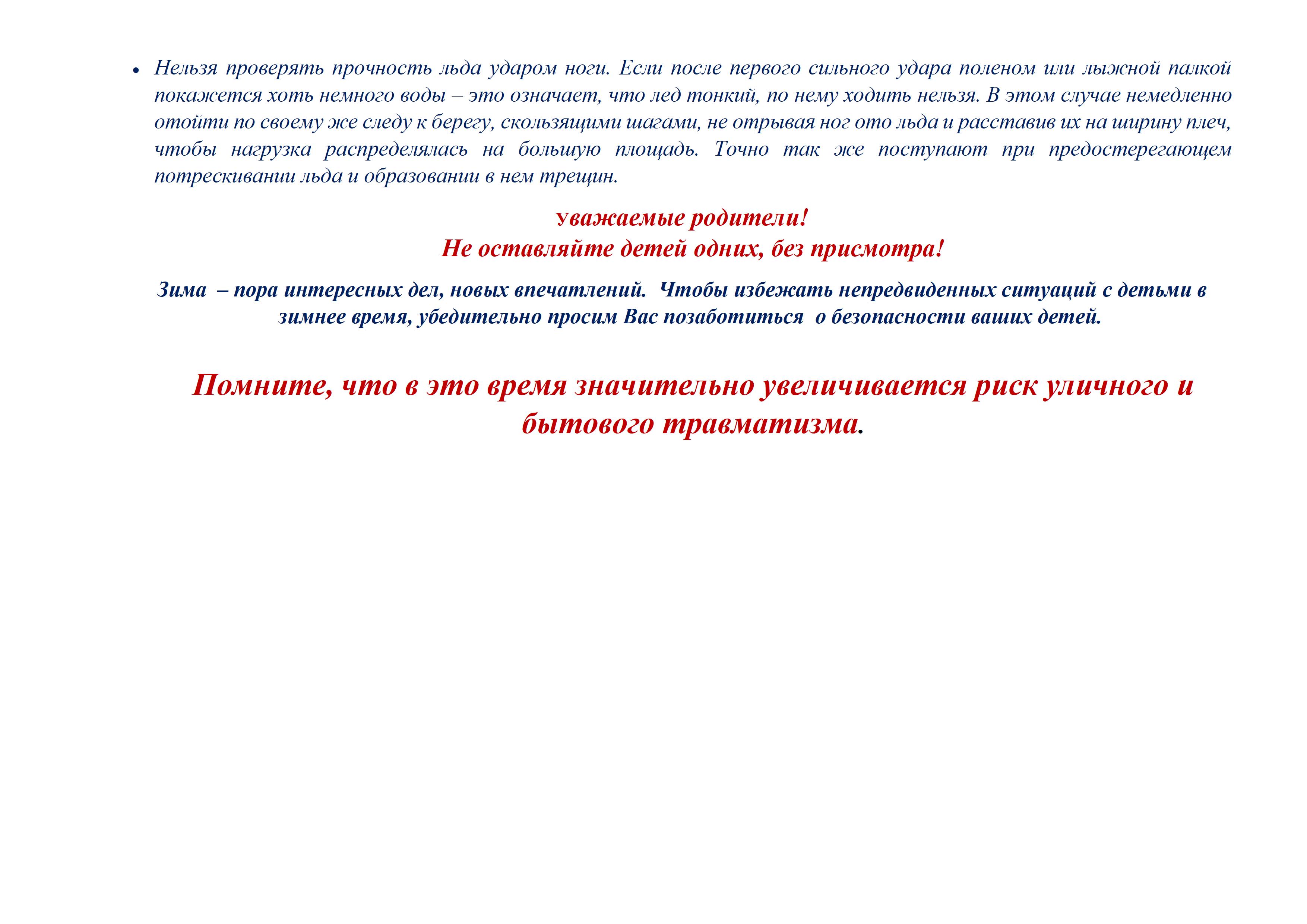 Безопасность детей в зимний период (памятка для родителей)